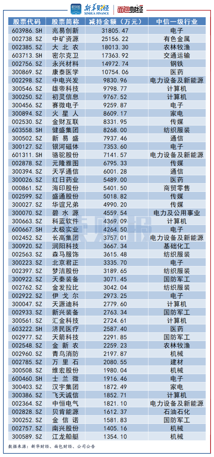 個股來看,兆易創新減持金額居首,中礦資源排在第二位,大北農位于第三位。其中,中礦資源董事孫梅春在2月累計減持金額為2.52億元,大北農董事邵根伙在2月份累計減持金額為1.8億元。另外,密爾克衛、永興材料及康泰醫學減持金額同樣居前。數據顯示,密爾克衛董事陳銀河在2月累計減持金額為1.74億元,永興材料2位董監高在2月合計減持金額為1.5億元,康泰醫學3董事在2月合計減持金額為1.08億元。
