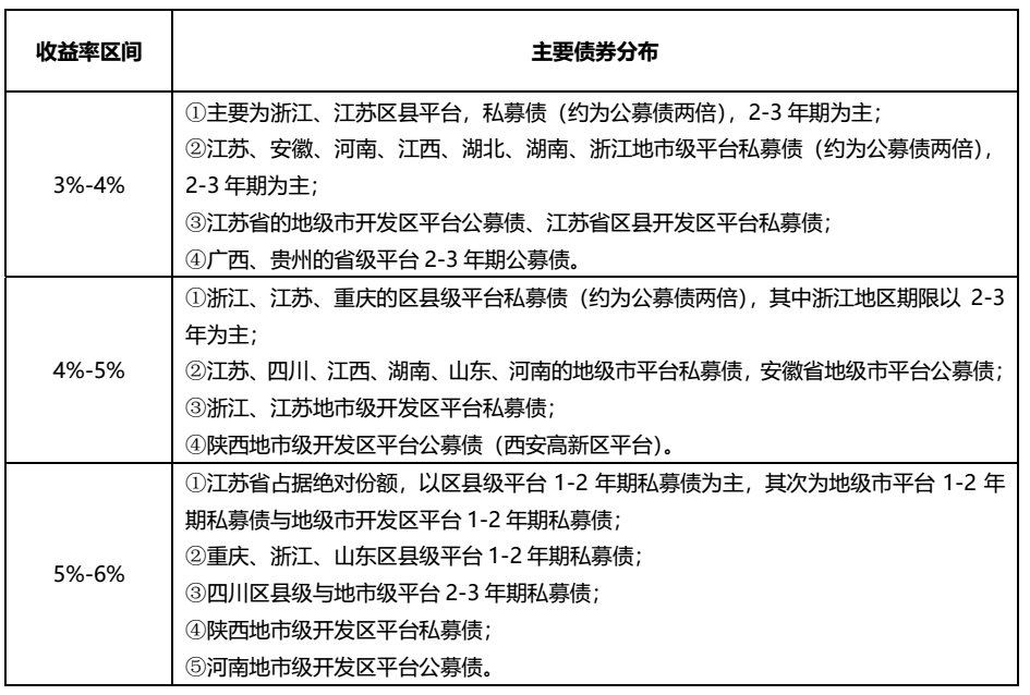 ①江浙兩地多為區縣級平臺(含市級開發區平臺),地市級平臺債券較少(多為估值3%以下債券),省級平臺因收益率基本在3%以下未在圖中;