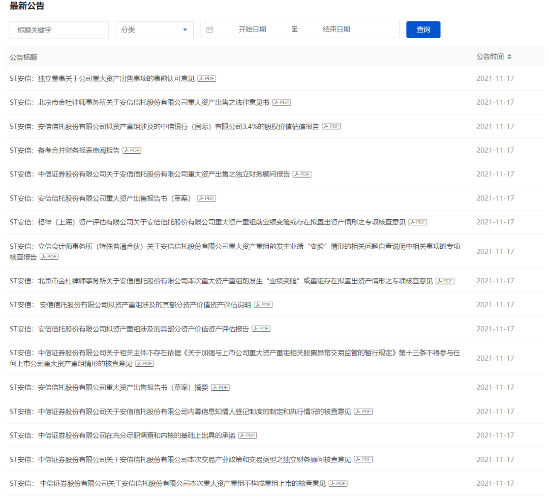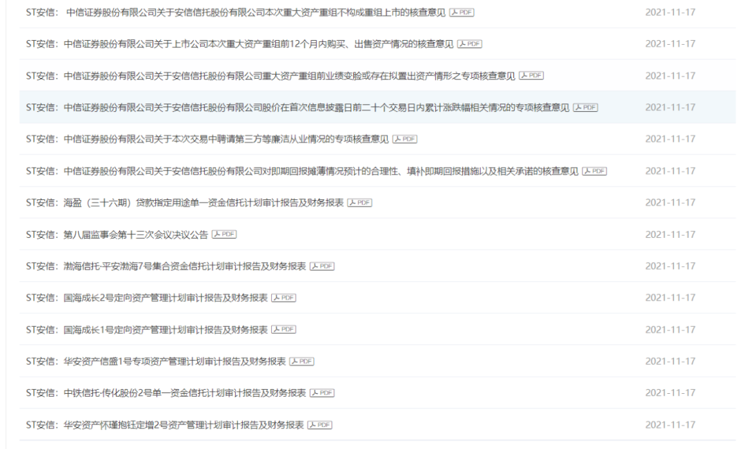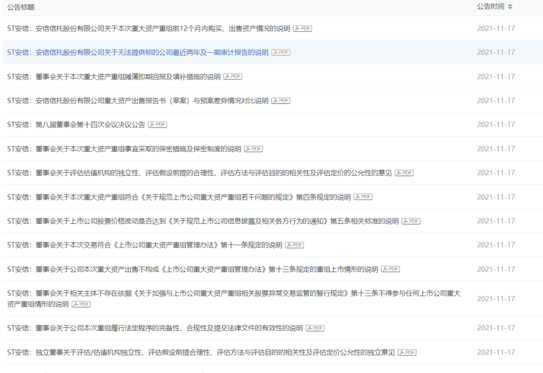 11月17日,安信信托再一次密集發布了45份公告,一系列公告推動了股價漲停;也讓人對這45份公告表示好奇,究竟說了什么?