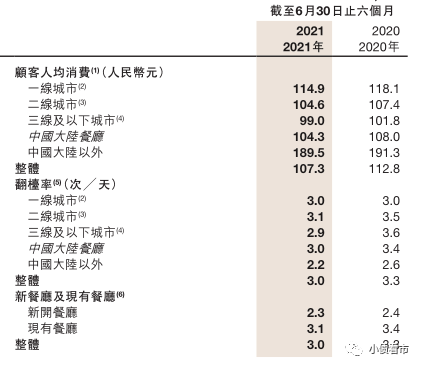 2021年中報(bào)人均消費(fèi)和翻臺(tái)率