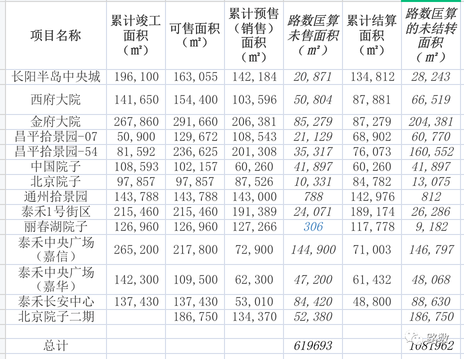 路數匡算,未售面積約60萬平方米,未結轉面積約100萬平方米。按照每平方米僅7萬簡單算,超400億貨值成立 ▼