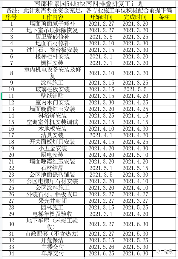 有的項目,在今年1月就有非常具體的復工方案。比如北京拾景園二期。方案詳細到墻面、石材修補等等細節。各位且看 ▼
