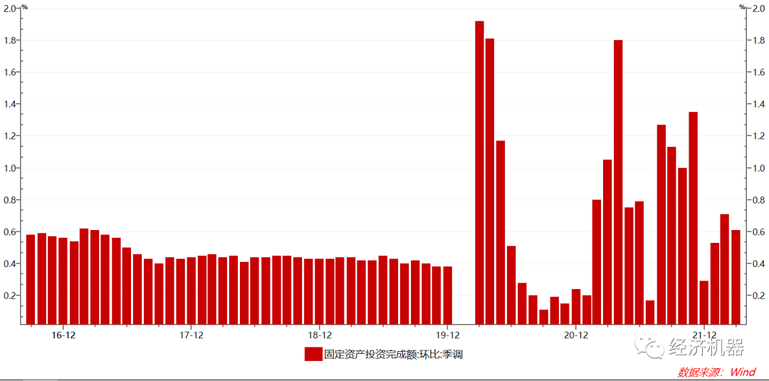 3)固定資產投資維持高增速。3月固定資產投資累計同比增長9.3%,較上月回落2.9個百分點。環比季調增長0.61%,較上月回落0.1個百分點。雖然增速有所回落,整體增速也不如去年末1%以上的強度高,但要顯著高于較疫情前0.5%左右的增速(圖4)。