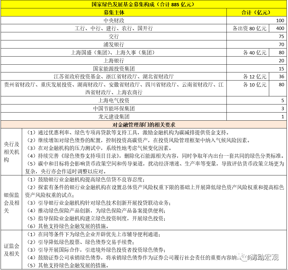 這里需要特別提及國家綠色發(fā)展基金(政府為產(chǎn)業(yè)基金),這是一家成立于2020年7月,由財(cái)政部、生態(tài)環(huán)境部、上海市人民政府共同發(fā)起,出資方包括財(cái)政部、長江經(jīng)濟(jì)帶11個(gè)省份、金融機(jī)構(gòu)和大型企業(yè)的政府產(chǎn)業(yè)類基金。
