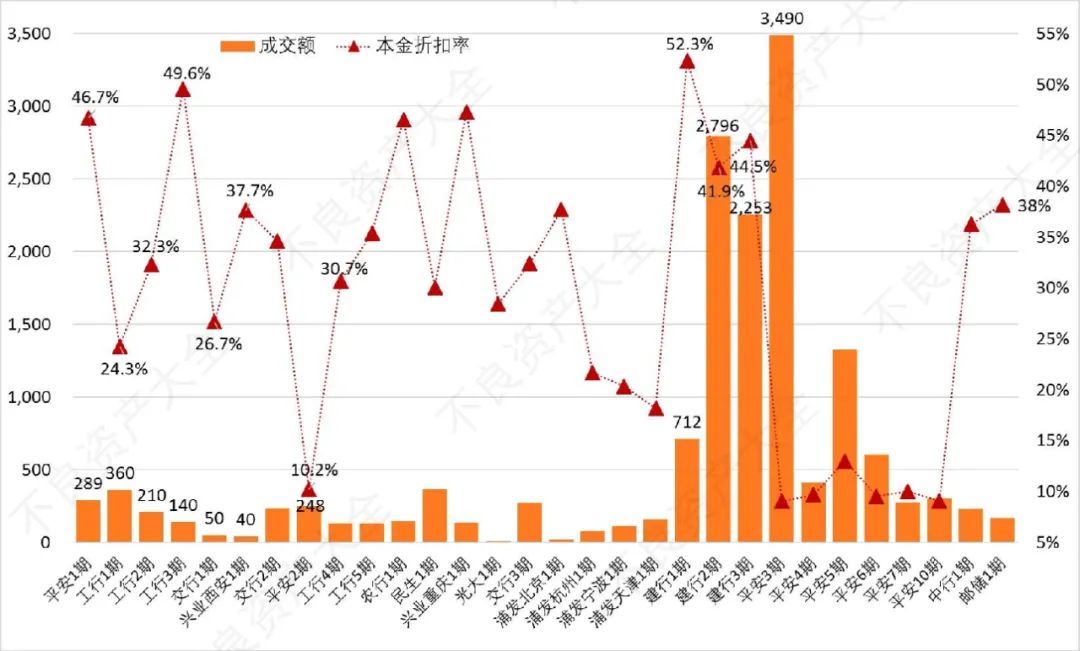 各期不良資產(chǎn)成交額及本金折扣率(單位:萬元;%)