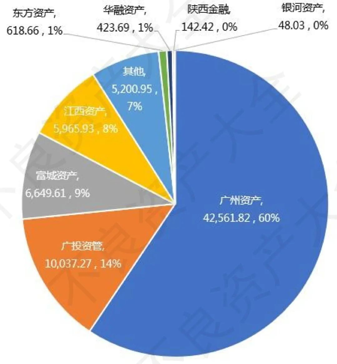 從購買不良資產(chǎn)本金余額總額角度,廣州資產(chǎn)無疑拿下了24期(34期中有10期沒有公開成交信息,下同)資產(chǎn)中的六成,當(dāng)屬最積極參與者。有趣的是,五大金融資產(chǎn)管理公司中華融、東方、銀河三家機(jī)構(gòu)也分別拿下一期,但有且只有一期,可能五大金融資產(chǎn)管理公司對目前成交價(jià)并不十分滿意。