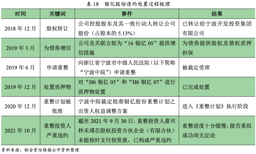 違約后,銀億股份采取破產重整等多種方式償債。但截至目前,公司仍未足額償付逾期債務。銀億股份違約處置過程梳理如下: