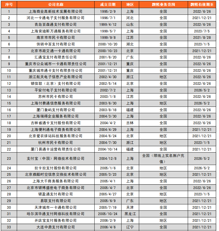 原標(biāo)題: 第三方支付機(jī)構(gòu)大全(2021)
