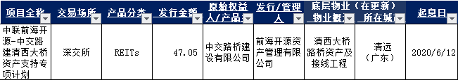 1、中聯前海開源-中交路建清西大橋資產支持專項計劃(類REITs)