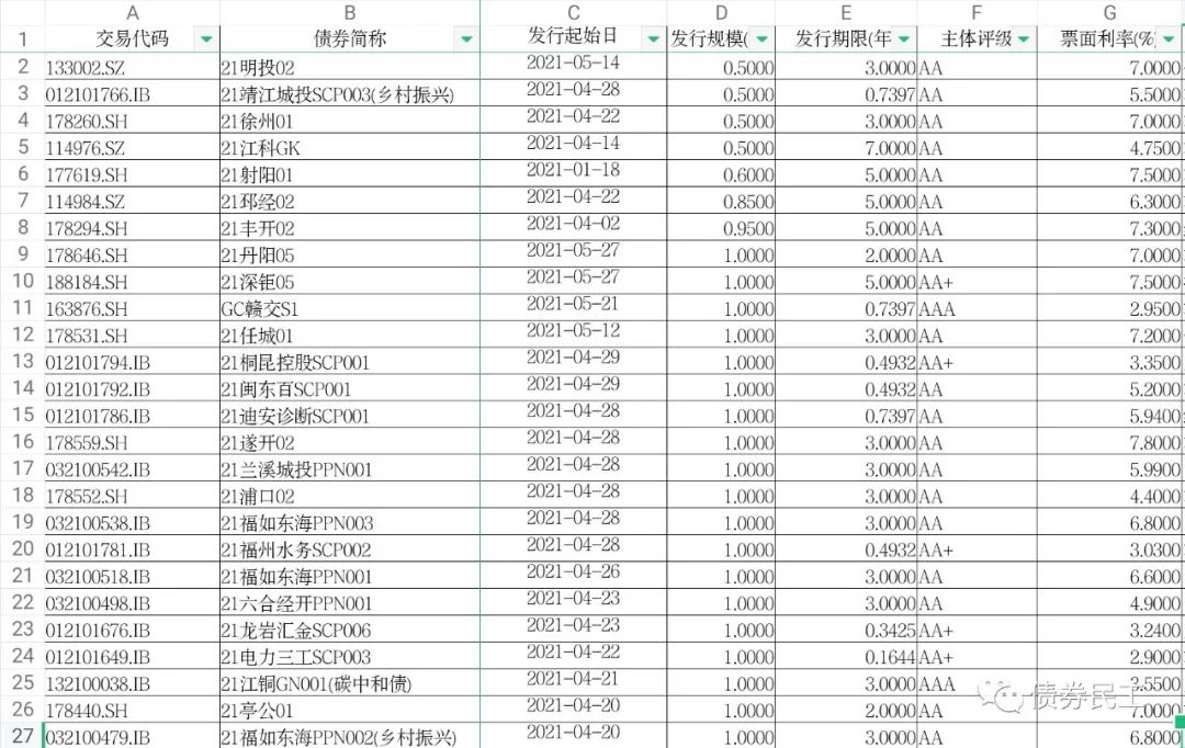 債券民工今天無(wú)意中發(fā)現(xiàn),2021年以來(lái),信用債券市場(chǎng)的最低發(fā)行金額還真的是超乎想象了。2021年1月1日至5月31日,發(fā)行金額為5000萬(wàn)的就有4只債券,發(fā)行金額低于1億元的債券有7只!發(fā)行金額為1億元的債券共有46只!發(fā)行金額低于2億元的債券共有107只!