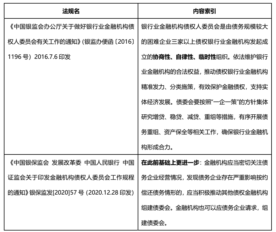 但是隨著《中國(guó)銀保監(jiān)會(huì) 發(fā)展改革委中國(guó)人民銀行 中國(guó)證監(jiān)會(huì)關(guān)于印發(fā)金融機(jī)構(gòu)債權(quán)人委員會(huì)工作規(guī)程的通知》的明確章程,我們清晰看到工作思路的轉(zhuǎn)變,更多是提前組建,持續(xù)監(jiān)督的思路。