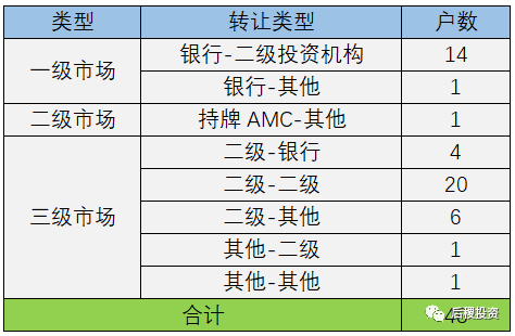 2019年二級投資機構共出讓69戶,出讓債權金額20億余元,其中二級-二級為主要轉讓類型。