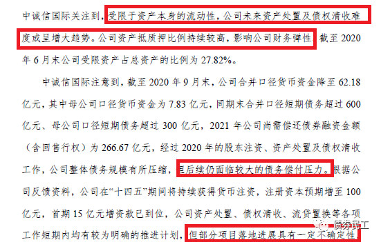 評級展望確認為負面的主要原因是公司未來資產處置及債權清收難度增大、資產抵質押比例較高、債務償付壓力較大、項目落地具備一定的不確定性等。