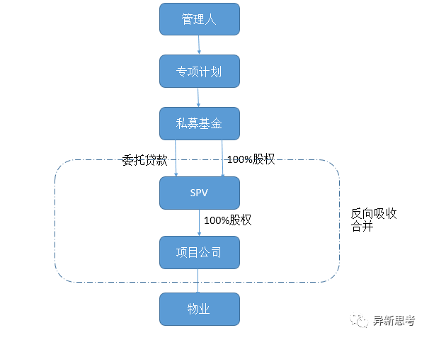 (但跟一般的類Reits結(jié)構(gòu)中最后一步項(xiàng)目公司反向收購(gòu)SPV又有所不同,主要不同和原因見(jiàn)后文分析)。