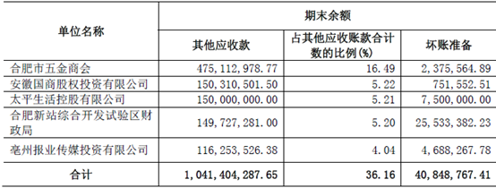 2017年底國購?fù)顿Y前五大其他應(yīng)收款明細(xì)