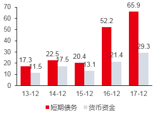 國購?fù)顿Y近幾年短期債務(wù)和貨幣資金情況