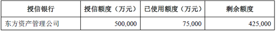 (2)、再融資空間非常小。截至2017年底,發(fā)行人已獲得工行、建行、中行等多家金融機(jī)構(gòu)共計(jì)210億元的授信額度,已使用156億元,剩余授信額度為54億元。看起來公司還有較大規(guī)模的銀行授信沒用,但拆分細(xì)看可知剩余未用授信中最主要來自于東方資產(chǎn)管理公司,集中度太高,而且這種AMC的授信一般成本很高。