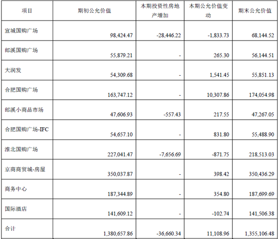 國購?fù)顿Y2017年底投資性房地產(chǎn)情況