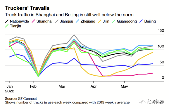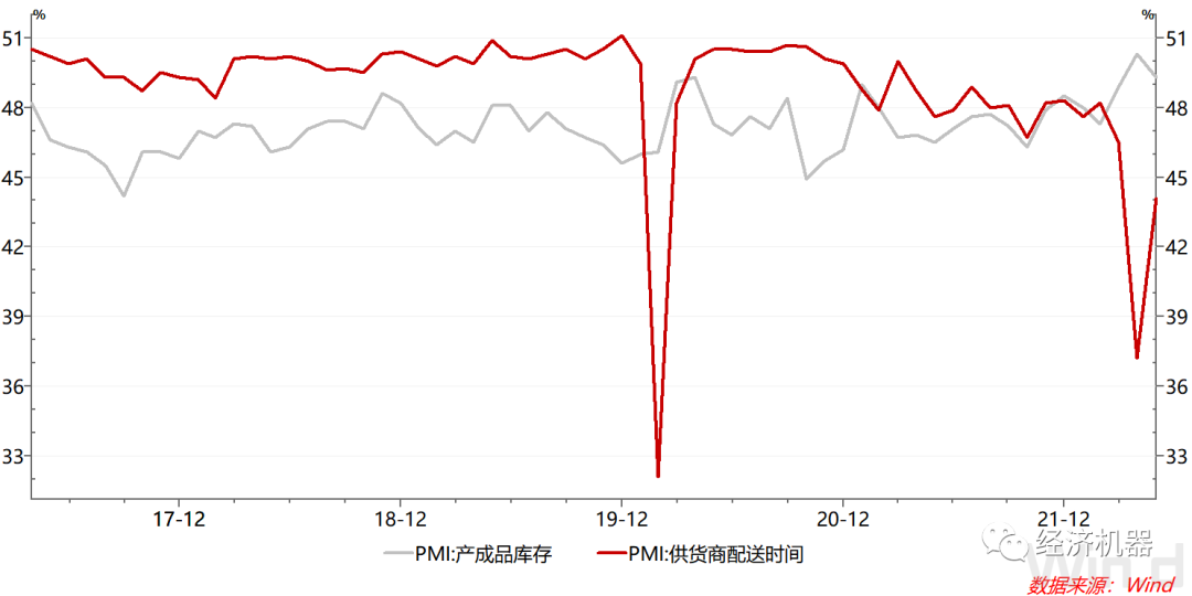 PMI配送時間指數(shù)與我們看到的物流和港口數(shù)據(jù)是基本一致的。可以看到5月以來,隨著城市的逐步開放,各地的卡車流量均有所回升,說明供應鏈正在好轉。但從全國范圍內(nèi)看,最近一周卡車流量仍較去年同期低21%。