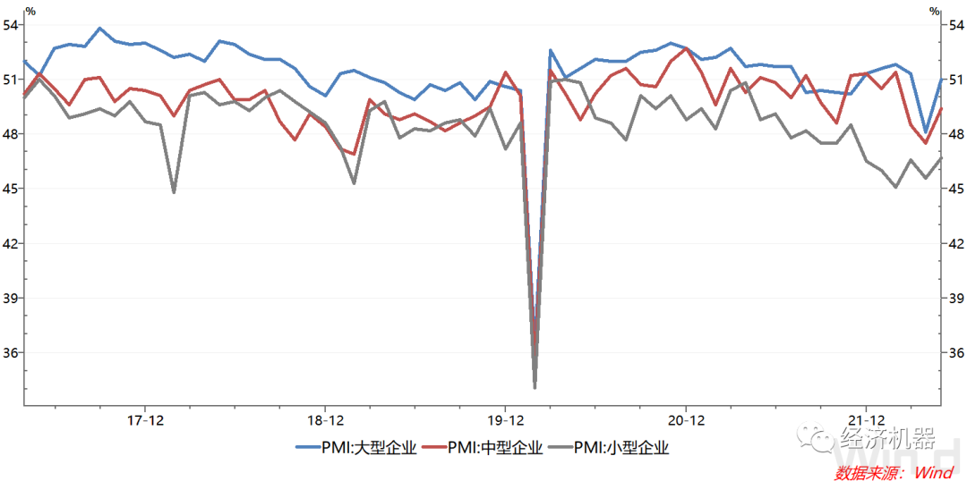 一般經(jīng)濟下行壓力下,小企業(yè)生存更為艱難。而小型企業(yè)PMI今年相對穩(wěn)定的表現(xiàn),可能與中央持續(xù)加大中小微企業(yè)支持相關。5月23日,國常會又推出6方面33項一攬子穩(wěn)經(jīng)濟措施,并著力強調(diào)對中小微企業(yè)的支持,幫助小企業(yè)度過難關。