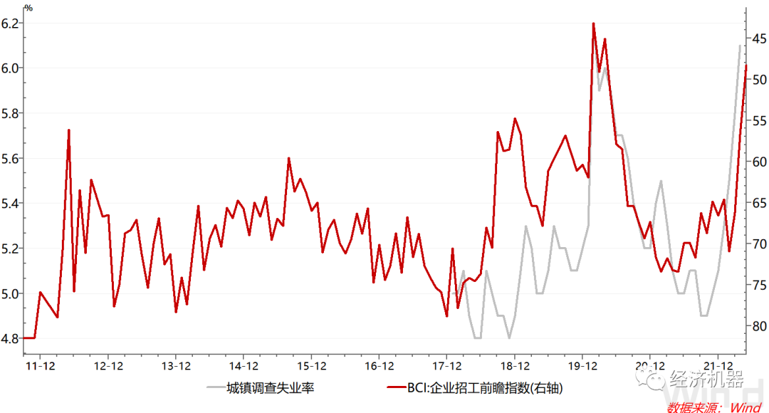 圖9、BCI企業(yè)招工前瞻指數(shù)(倒序)與城鎮(zhèn)調(diào)查失業(yè)率