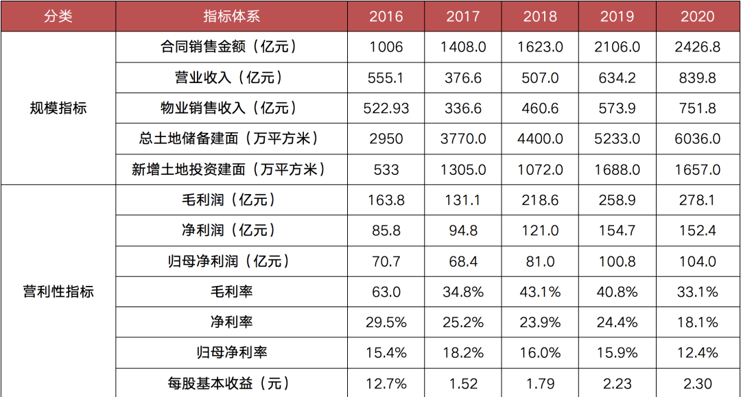 表:2017-2020年金地集團財務指標
