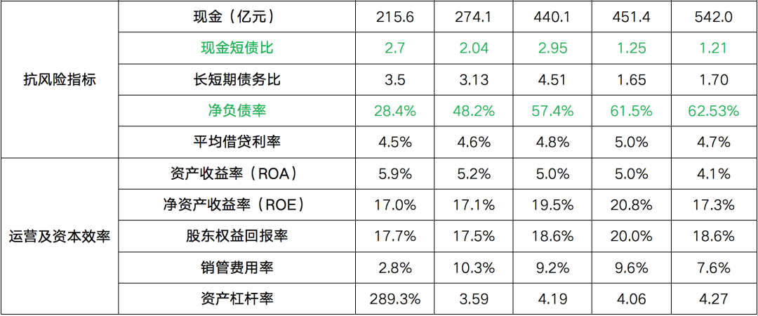 銷管費用率=銷售及管理費用/報告期內操盤銷售金額;資產杠桿率=總資產/所有者權益合計