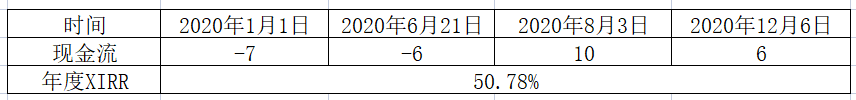 這個話有點拗口,比如在年度IRR中,其默認是2020年6月30日投入20億,2021年6月30日收回32億。但例2中,明顯項目投入時間偏早,回收時間偏晚,導致這個默認不成立!