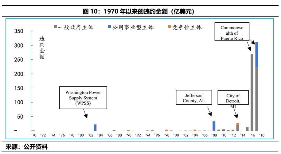 2013年底特律市的破產,違約金額高達200億美元;2016-2017年則是美屬波多黎各的債務違約,涉及金額合計高達400億美元。