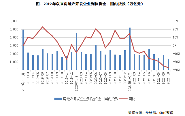 但值得注意的是,雖然當前政策風向緩和以及個人按揭貸款發放提速,但仍未明顯傳導到企業貸款上,金融機構對開發企業的信心重塑仍需時間。1-10月的企業端貸款仍顯不足,10月新增企業中長期貸款2190億元,同比少增1923億元;而從10月的房企到位資金來看,其中國內貸款1378億元,同比減少27.2%,降幅較9月擴大2.3個百分點,房企的開發貸、信托貸款方面的融資放松仍需時間傳導。