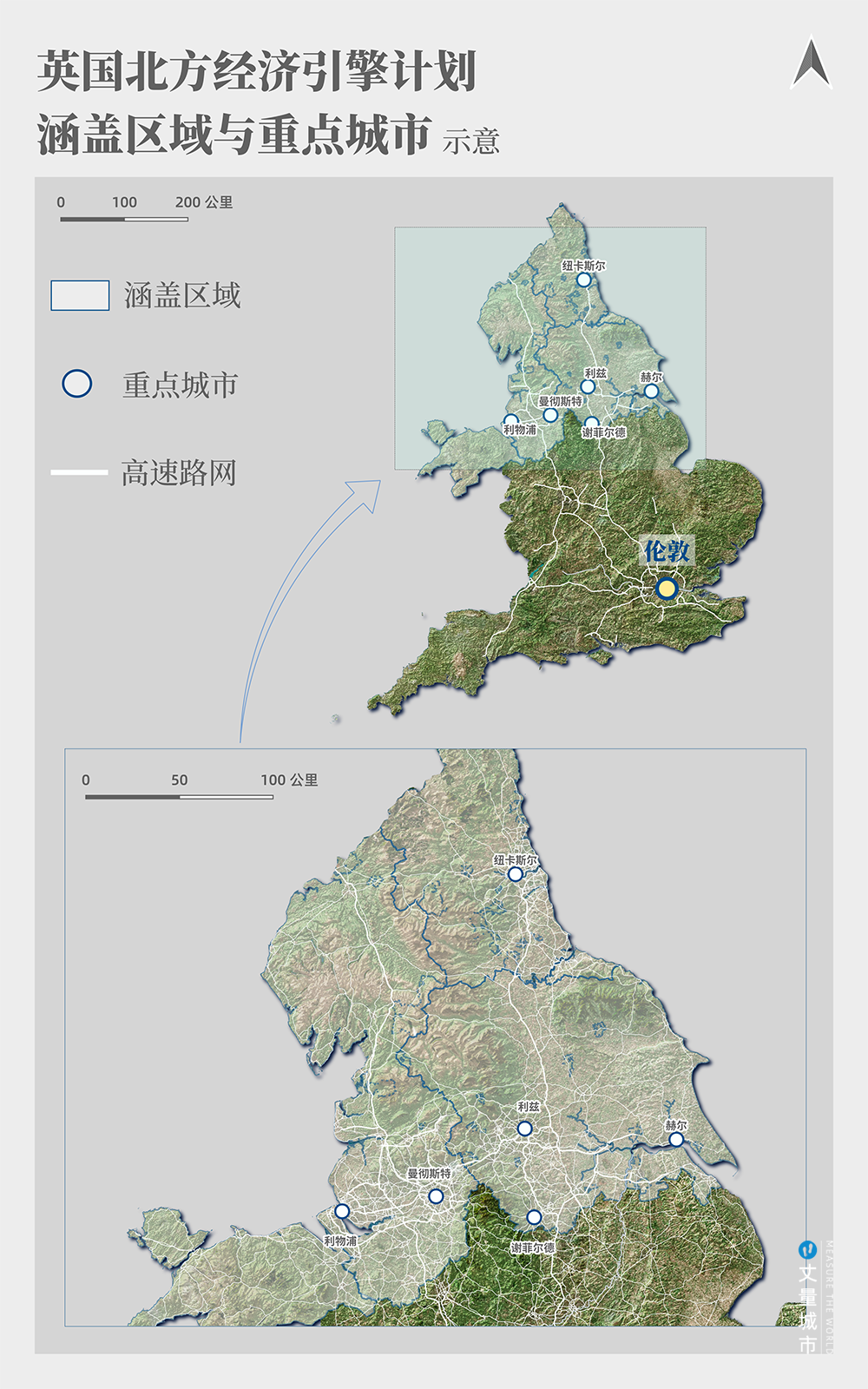 此計劃涉及以曼徹斯特、利物浦、利茲、紐卡斯爾等城市為核心的英格蘭北部11個地區及北威爾士。