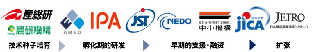 ▼ 一系列產業支援機構,組成了創業的流程化生態支持(來源:日本內閣府官網資料)