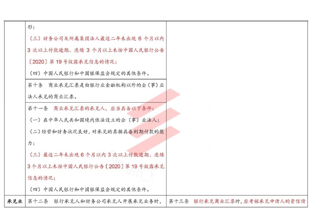 “第二十四條 銀行承兌匯票和財務公司承兌匯票的最高承兌余額不得超過該承兌人總資產的15%。銀行承兌匯票和財務公司承兌匯票保證金余額不得超過該承兌人吸收存款規模的10%。中國人民銀行和中國銀保監會可以根據金融機構內控情況設置承兌余額與貸款余額比例上限等其他監管指標。”