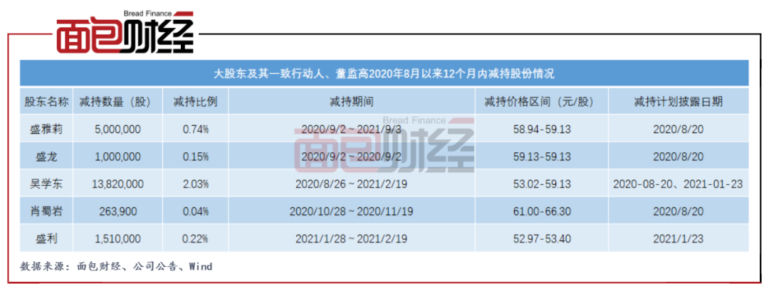 除了此次減持,桃李面包大股東及其一致行動人、董監高自2020年8月以來的12個月內合計減持2159.39萬股。按照減持價格區間中值測算,這些股東在此期間累計套現超過12億元。