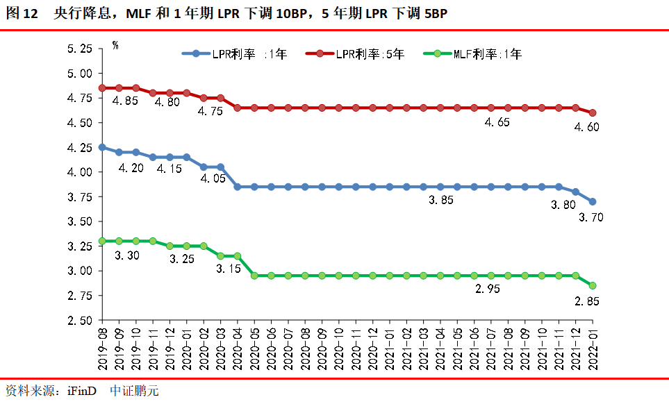 1月20日,LPR下調(diào)。1年期LPR報3.70%,前值為3.80%,跟隨MLF下調(diào)10BP;5年期以上品種報4.60%,前值為4.65%,僅下調(diào)5BP。