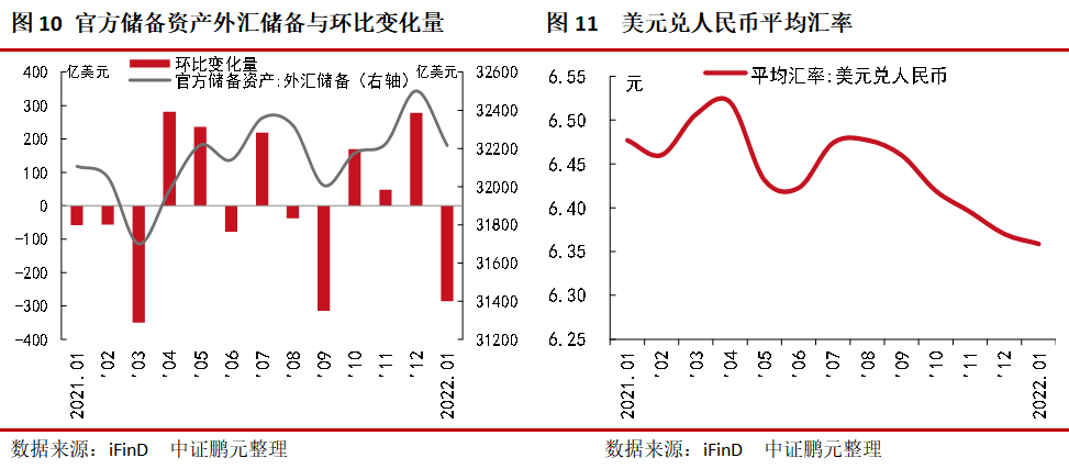 2月7日,國家外匯管理局數(shù)據(jù)顯示,截至2022年1月末,我國外匯儲備規(guī)模為32,216億美元,較2021年末下降285億美元,降幅為0.88%。1月,美元兌人民幣平均匯率為6.36,連續(xù)6個月小幅回落。