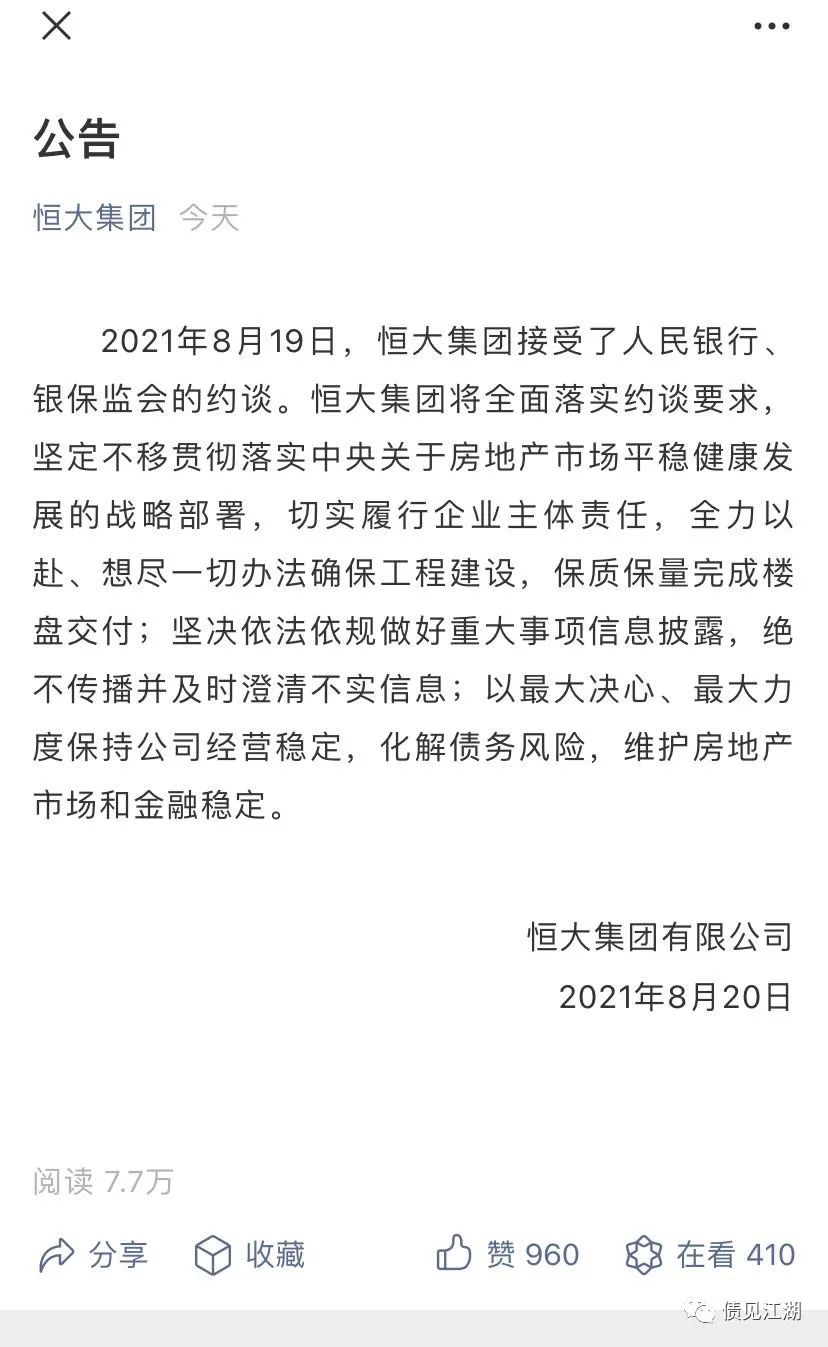 恒大的回復及時高效,態度明確,上升到了房地產市場的平穩健康發展,頗有武林盟主的承諾。而落腳于當下,對樓盤交付,對工程進度的關心,卻還是要錢的流通,不知道這次是哪家金融機構來扛這個大雷,跟著恒大把該建都建好。在之前,給房開公司放款,那是何等的榮幸;現如今卻是多么謹慎。之前的小甜甜們,一個個成了牛夫人。