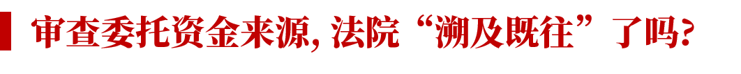 換言之, 一審法院認為《信托法》第二十五條已經規定了委托資金來源的審查義務, 因此即便當時的監管規則沒有該等具體的要求, 某信托公司仍然負有審查委托資金來源的職責。這個觀點對于受托人來說似乎難以接受, 因為大部分金融機構在開展資管業務時往往本著“監管沒說一定要做就是可以不做”的態度, 一審法院的觀點相當于拿現在的監管要求對早前的業務提出了“更高”的要求, 站在信托計劃受托人的角度, 頗有點“溯及既往翻舊賬”的意味。