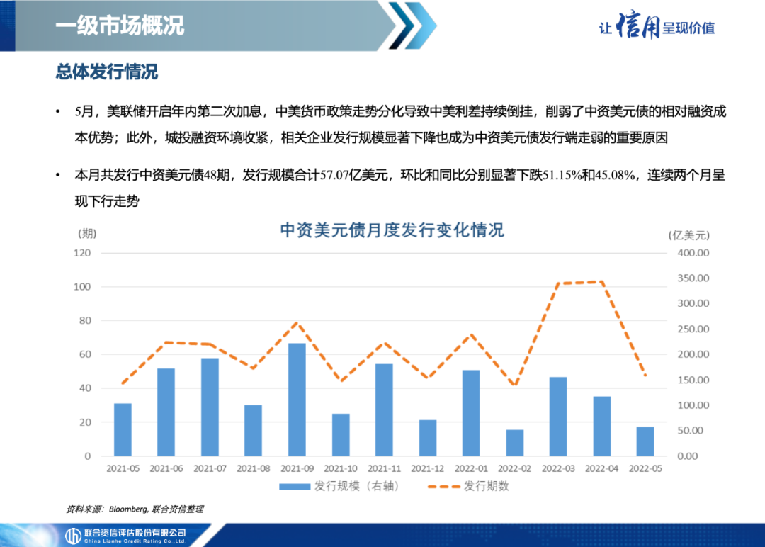 原標題: 【跨境債市研究】一級市場發行量再降,二級市場回報率繼續下探——中資美元債市場信息月報(2022年5月)