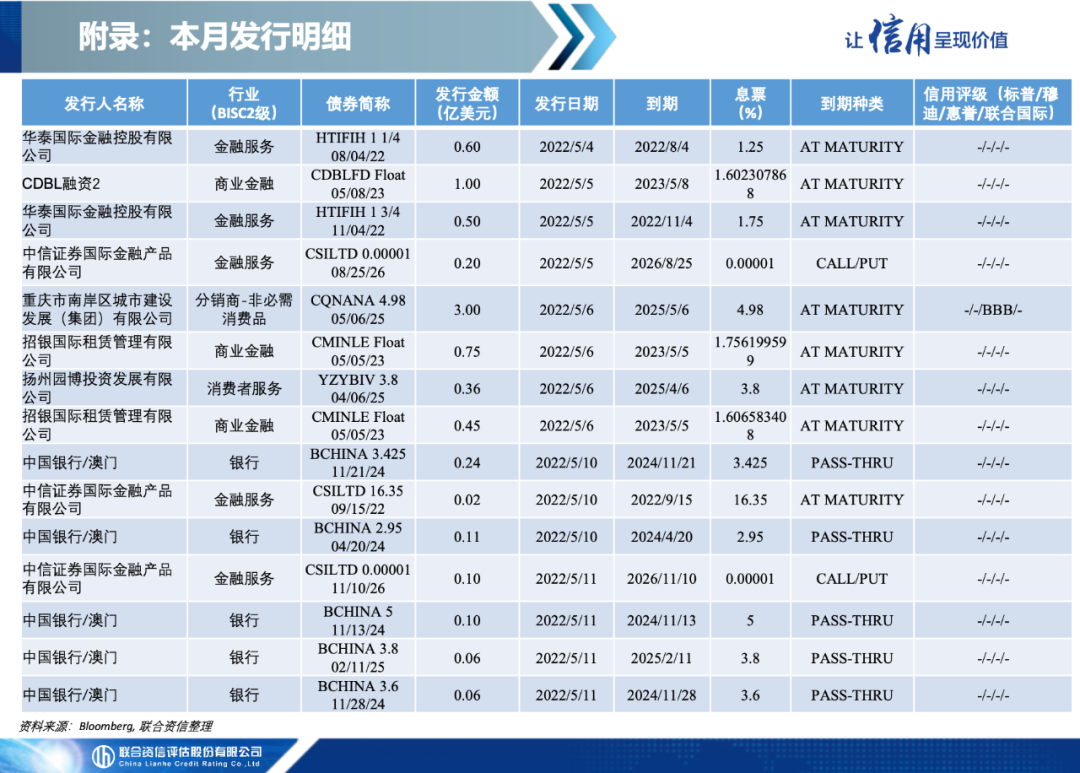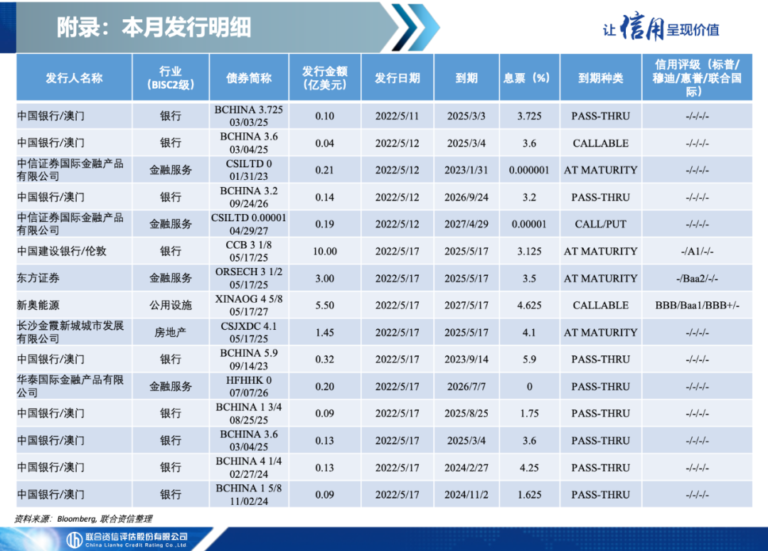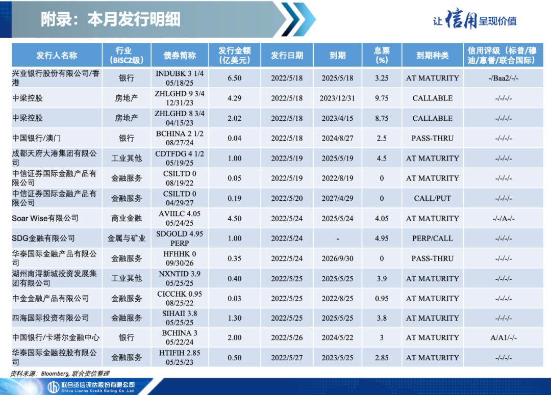 一級市場發行量再降,二級市場回報率繼續下探——中資美元債市場信息月報(2022年5月)