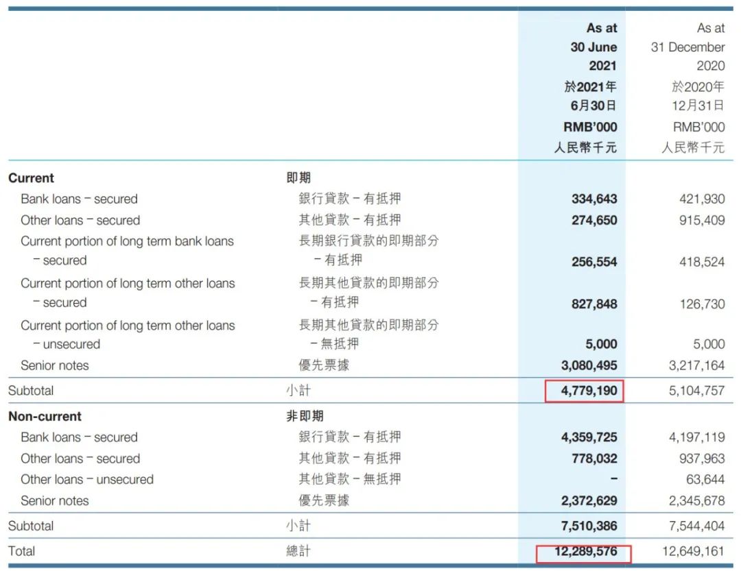 最新披露的2021年中報(bào)里,截至2021年6月30日,大發(fā)地產(chǎn)總債項(xiàng)約為122.90億元,包括計(jì)息銀行及其他借貸及優(yōu)先票據(jù)。2020年末這一數(shù)據(jù)為126.49億元,今年上半年略少了些。