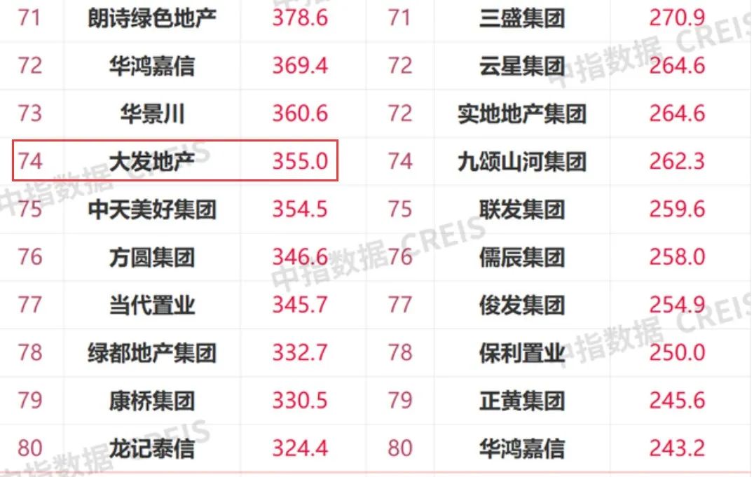 中指院的這份榜單里,第100位的大唐地產(chǎn)權(quán)益銷售額為190.3億元,如此來看,大發(fā)地產(chǎn)的權(quán)益銷售額應(yīng)該低于這個(gè)數(shù)字。
