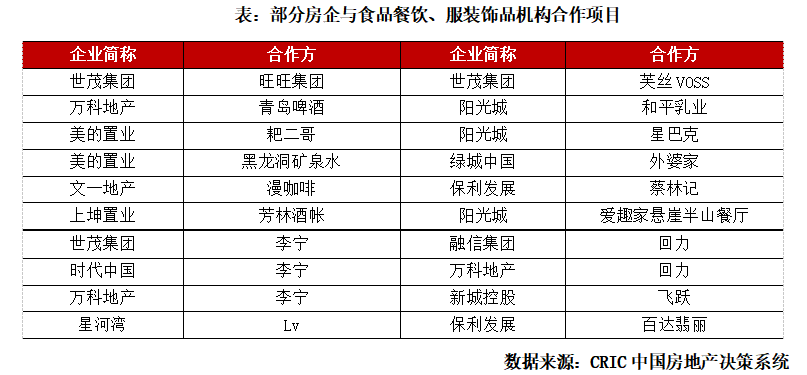 與汽車的跨界合作則是考慮到目標客群有一定重合,有效擴展企業客群。購房新房的客群中一部分既有購房需求,也有購車需求,這就孕育房企與車企跨界合作的機會,通過主打“一房一車”的營銷場景,提供雙向優惠來次級消費者購房購車。對房企而言,讓利刺激購房是主要目的,若客戶購車的話,有利于企業車位銷售。而對車企而言,綁定房企營銷,首先是擴大了品牌的推廣度,其次借助目標客群的重合,還能推動汽車銷量,屬于雙贏局面。不過目前房企與車企的跨界合作比較少,僅有四次,分別是富力x廣汽傳祺,富力x五菱宏光mini,陽光城x五菱宏光mini以及中國鐵建x一汽紅旗。