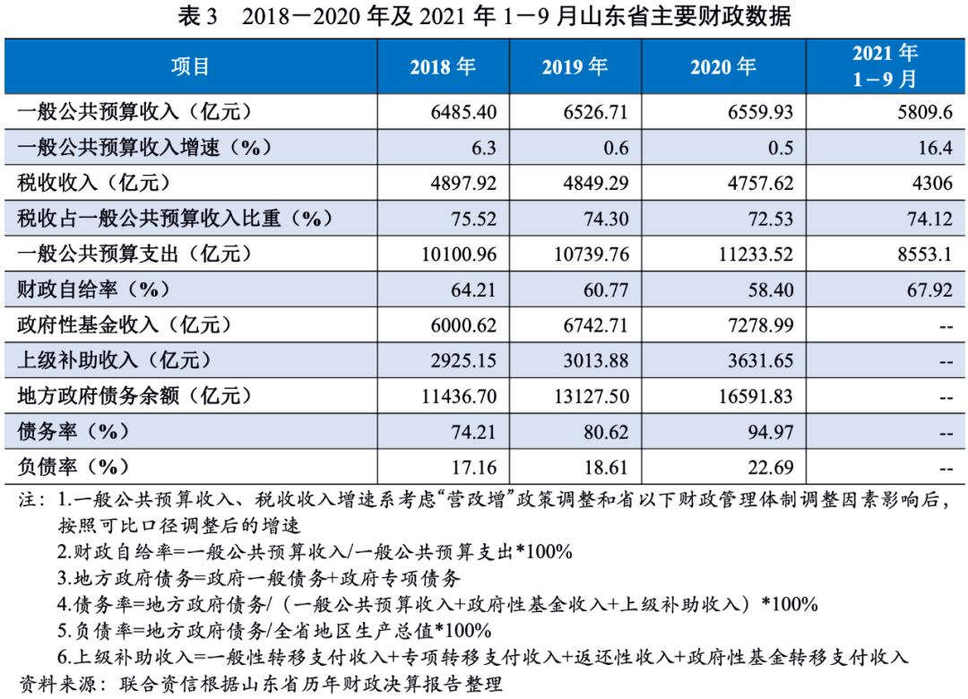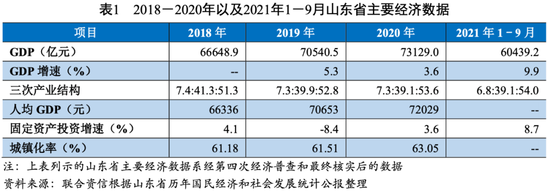 山東省經(jīng)濟(jì)和財政實力強(qiáng),GDP和一般預(yù)算收入規(guī)模長期排名全國前列,2021年1-9月,山東省經(jīng)濟(jì)延續(xù)增長態(tài)勢。由于加大對改善民生以及經(jīng)濟(jì)結(jié)構(gòu)調(diào)整的支持力度,山東省政府債務(wù)余額持續(xù)增長,2020年末居全國第2位,距財政部下達(dá)的政府債務(wù)限額尚有一定的空間。山東省政府負(fù)債率在全國排名靠前,政府債務(wù)率在全國排名中游,考慮到山東省產(chǎn)業(yè)基礎(chǔ)和財政實力強(qiáng),整體債務(wù)風(fēng)險可控。