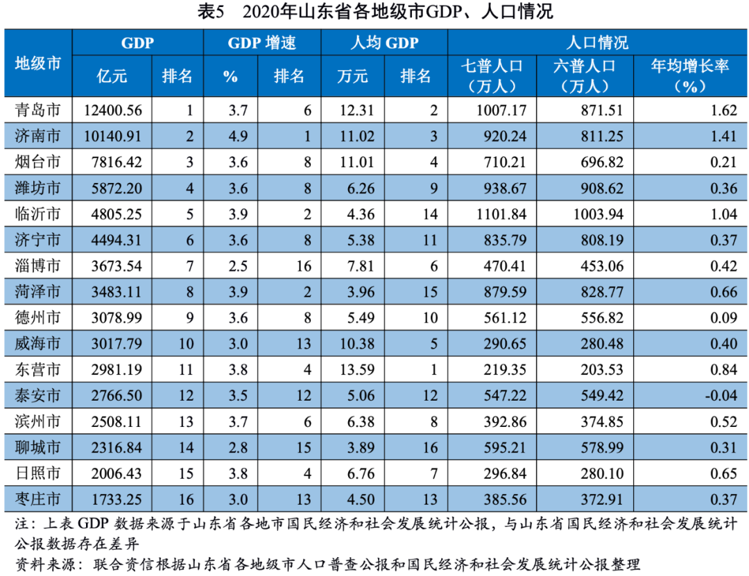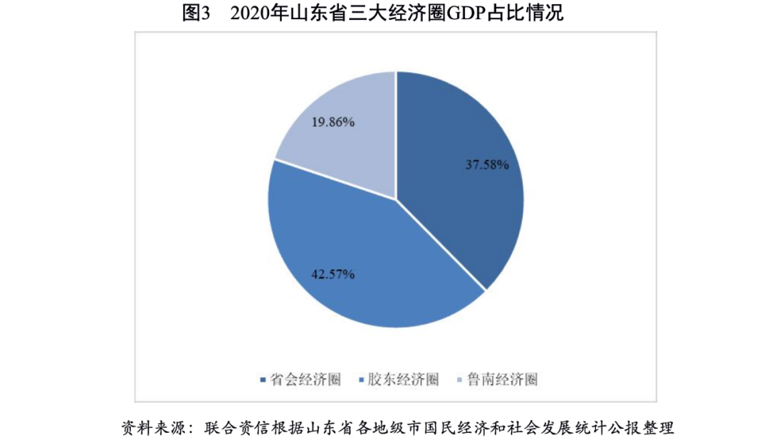 山東省形成了省會、膠東和魯南三大經(jīng)濟(jì)圈,其中以青島市、煙臺市等沿海城市為主的膠東經(jīng)濟(jì)圈和以濟(jì)南市為主的省會經(jīng)濟(jì)圈的經(jīng)濟(jì)和財政實力較強(qiáng)。2020年,山東省各地級市經(jīng)濟(jì)發(fā)展分化程度明顯,青島市和濟(jì)南市經(jīng)濟(jì)實力較強(qiáng),經(jīng)濟(jì)增速較快,人口虹吸效應(yīng)強(qiáng)。