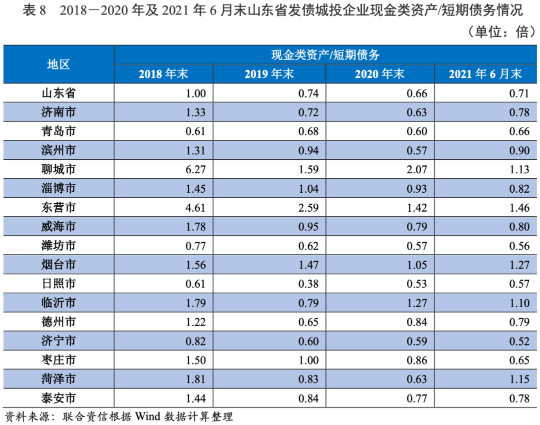 3.山東省各地級市財政收入對發(fā)債城投企業(yè)債務(wù)的支持保障能力