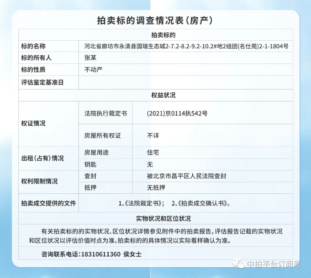 數為18層,拍賣標的位于18層。以下是本套房產的盡調信