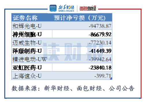 經統計,共有32家科創板上市公司預計2021年的歸母凈利潤為負。其中,以預告凈虧損的下限統計,孚能科技和寒武紀-U分別預計發生凈虧損11億元和9.35億元,為當期的“預虧王”,且兩家公司的凈虧損均較上年有所增加。
