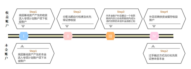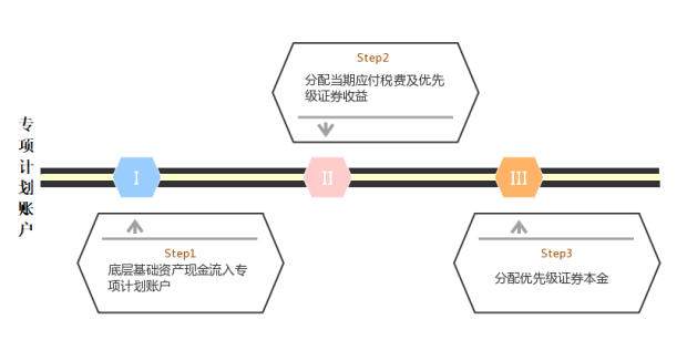 若專項計劃賬戶不對本金賬戶和收益賬戶區分管理,現金流將按照下圖進行分配: