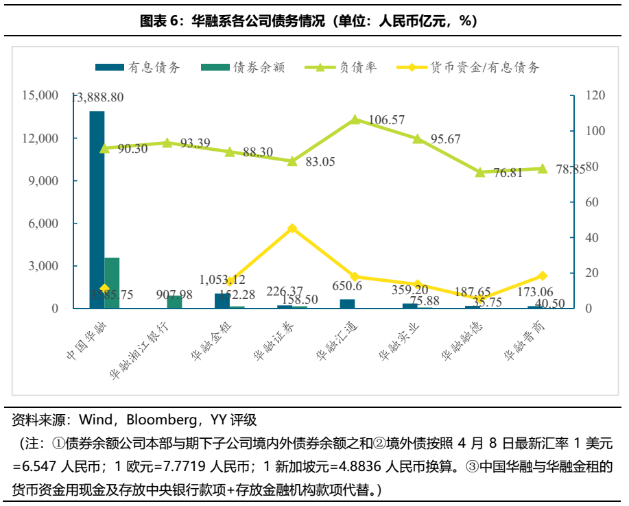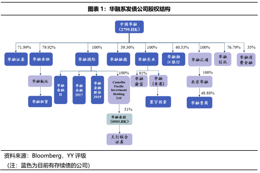華融系目前有存續債的公司共13家,除中國華融自身以外,另有6個一級子公司、3個二級子公司、3個三級子公司有存續債,此外中國華融和華融金控均為港股上市公司。